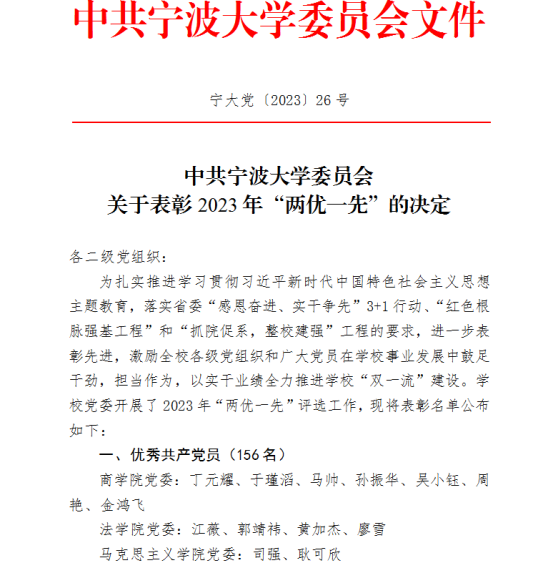党委在本次表彰大会中荣获10项荣誉。经济法与环境法研究所教师党支部、法学硕士研究生第一党支部荣获2023年先进基层党组织称号,杏吧原创