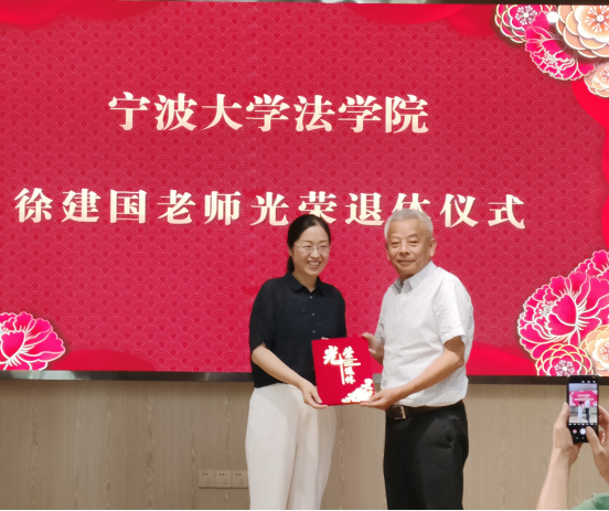 仪式上,孙芬娜书记为徐建国老师颁发了荣休证书;梁开银院长为徐建国老师送去了荣休纪念礼物;分工会主席王伟为徐建国老师送上代表祝福的鲜花。