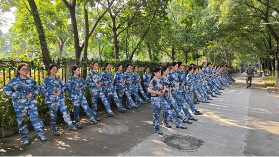 同学们在齐步、跑步训练中从不解到开窍,在队伍中听到齐刷刷的脚步声时忍不住一起为他们自己的集体鼓掌;休整时齐唱着嘹亮的军歌,每个人都用尽全力,歌声仿佛具有了强大的杀伤力,甚至从中感受到了军训的更大意义——让同学们意识到身在集体之中,感悟集体与个人的力量。军训不止是挥洒汗水,更是打开心扉,从而在集体中获得成长。