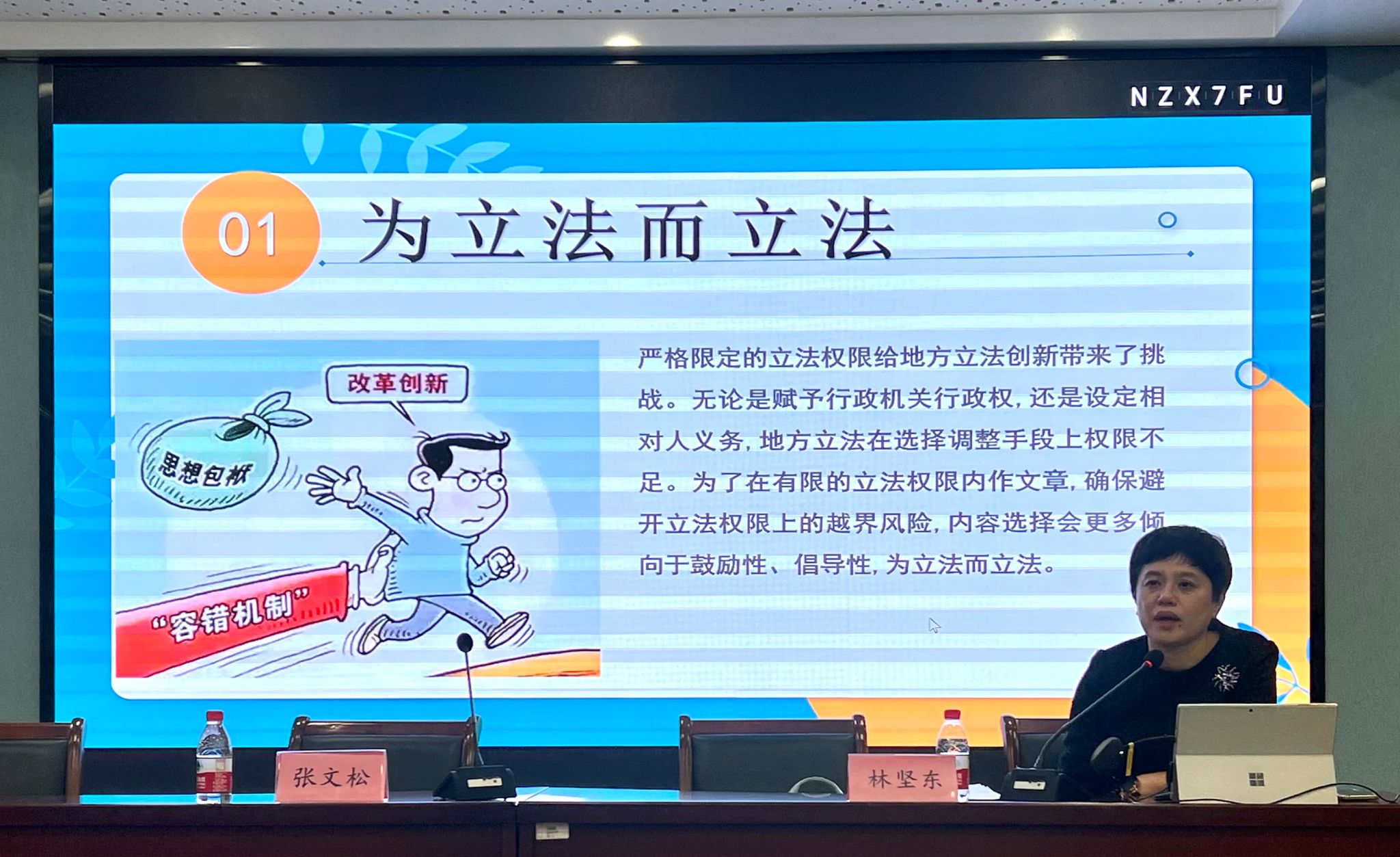 最后,结合习近平总书记对地方立法质量的要求,林处长就如何做好行政立法工作总结了三个要点:第一是善学。做一名优秀的立法工作者,既需要经常关心国家大事,关注党中央、国务院出台的各种大政方针,还需要经常学习社会上的一些新的知识。第二是多听。拓展民主立法的途径是行政立法过程中一件重要的事,要让更多的老百姓有机会参与立法,让更多的公众意见有机会让制定者听到。第三是时常换位思考。在立法过程中时常换位思考不仅能够促进公正平等,社会和谐,还能增强立法质量,提高公众信任。