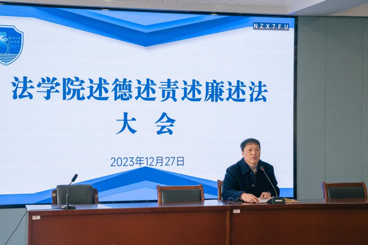 院长梁开银、党委书记孙芬娜分别在述德、述责、述廉、述法四个方面做了个人报告。梁开银院长同时从学院2023年的建章立制、学科建设、特色化人才培养、人才引进、系统性推进学院治理结构优化、存在问题等六方面做了总结报告,号召教职工履职尽责,挺膺担当,以习近平法治思想为统领,推动学院各项工作高质量开展。