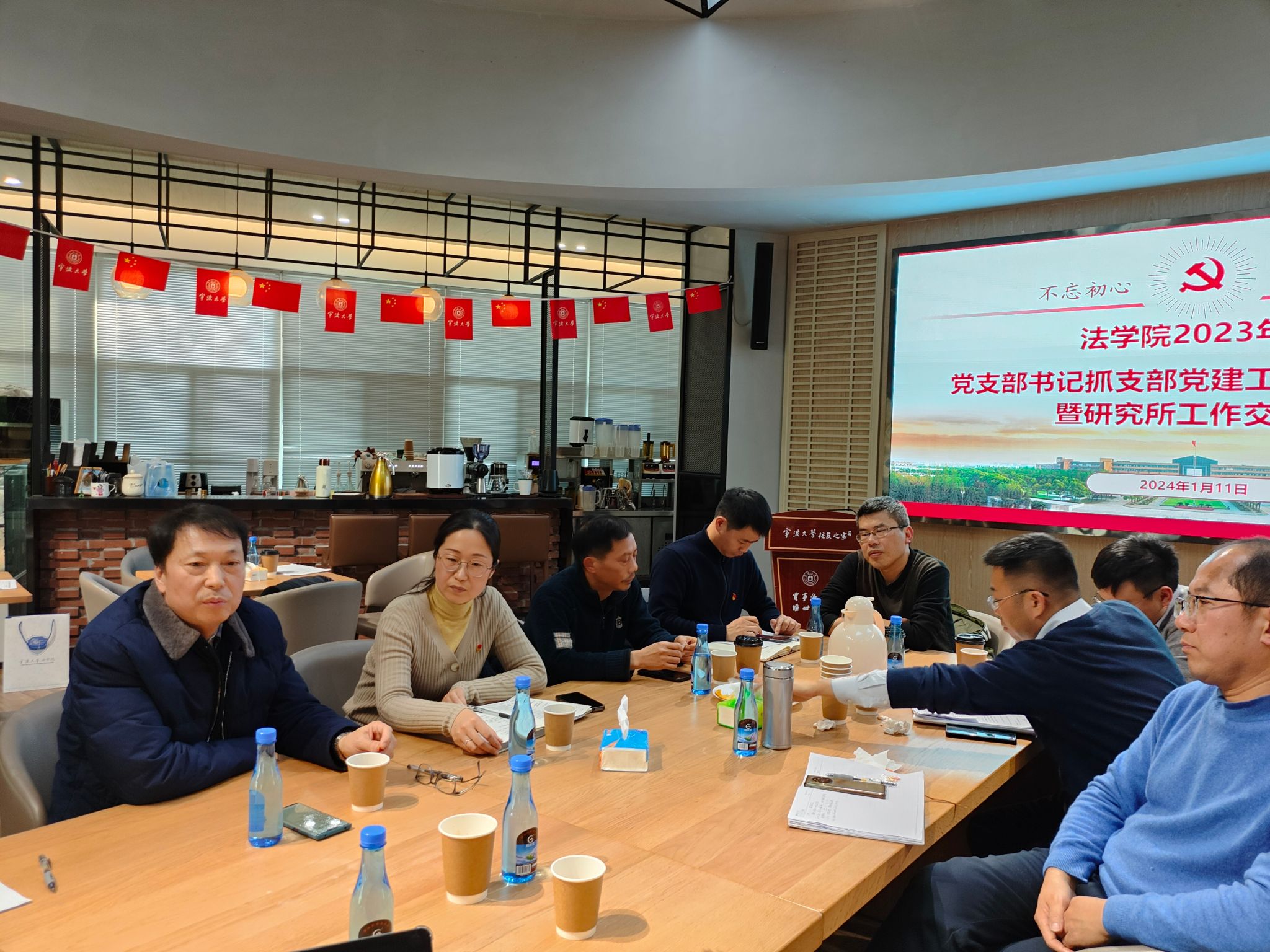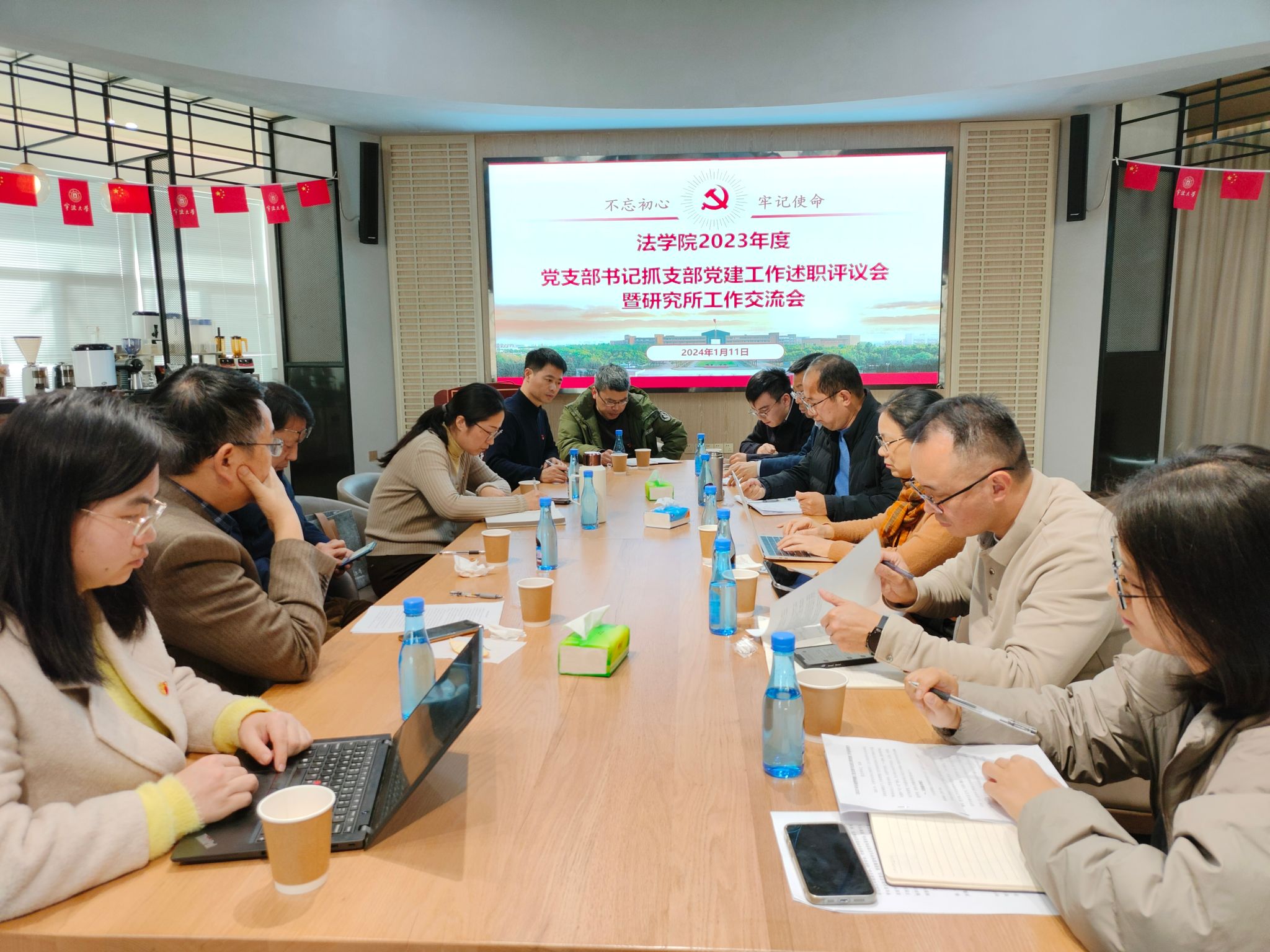 在校友之家召开2023年度党支部书记抓支部党建工作述职评议会暨研究所工作交流会,学院党委班子、全体教工党支部书记、研究所所长、专职组织员参加会议。会议由学院党委书记孙芬娜主持。