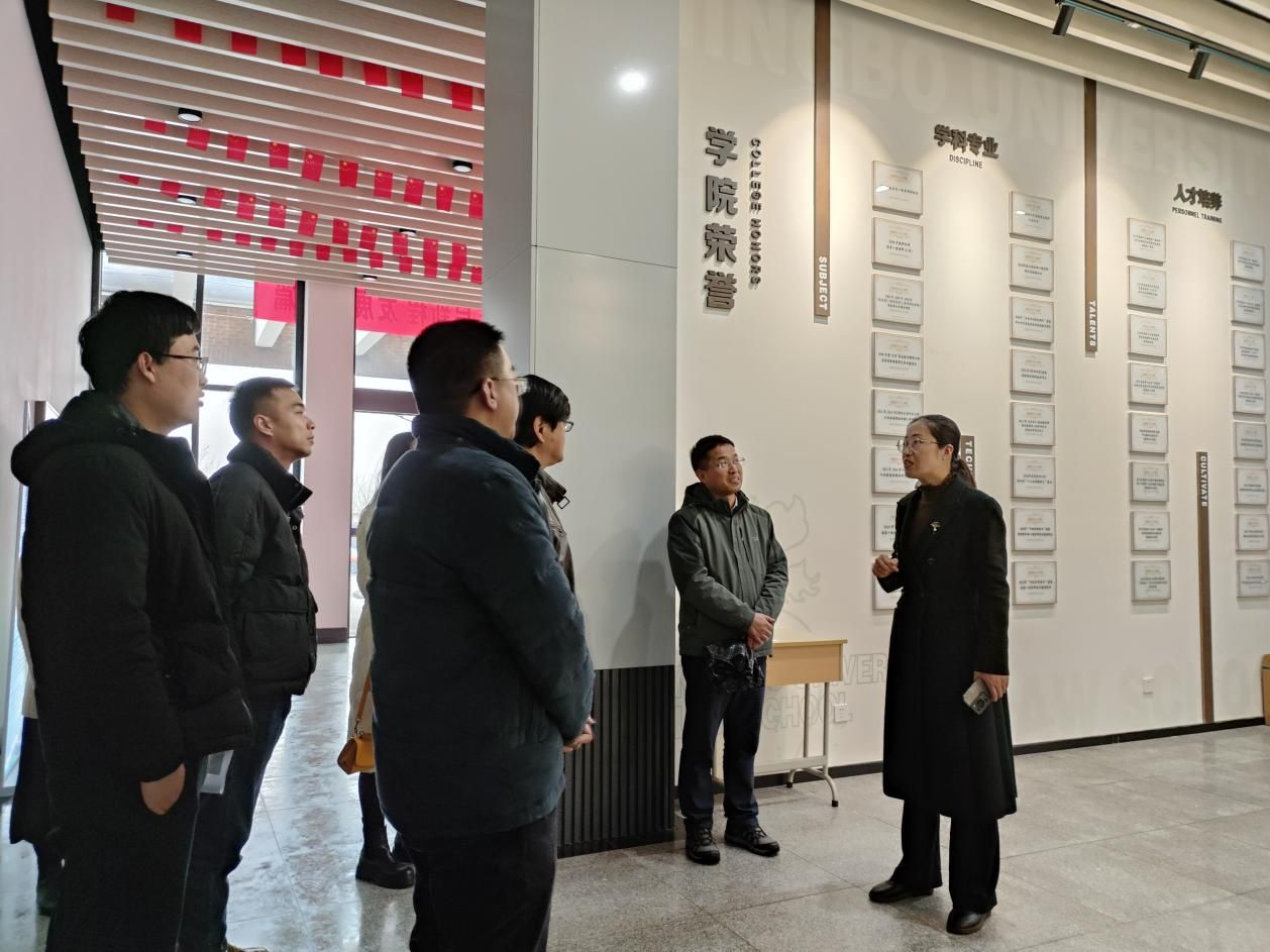的发展历程和历史沿革、专业设置和师生规模。走访中,来访一行对学院设置的教授风采墙、学生荣誉墙、楼宇导引牌等啧啧称赞。