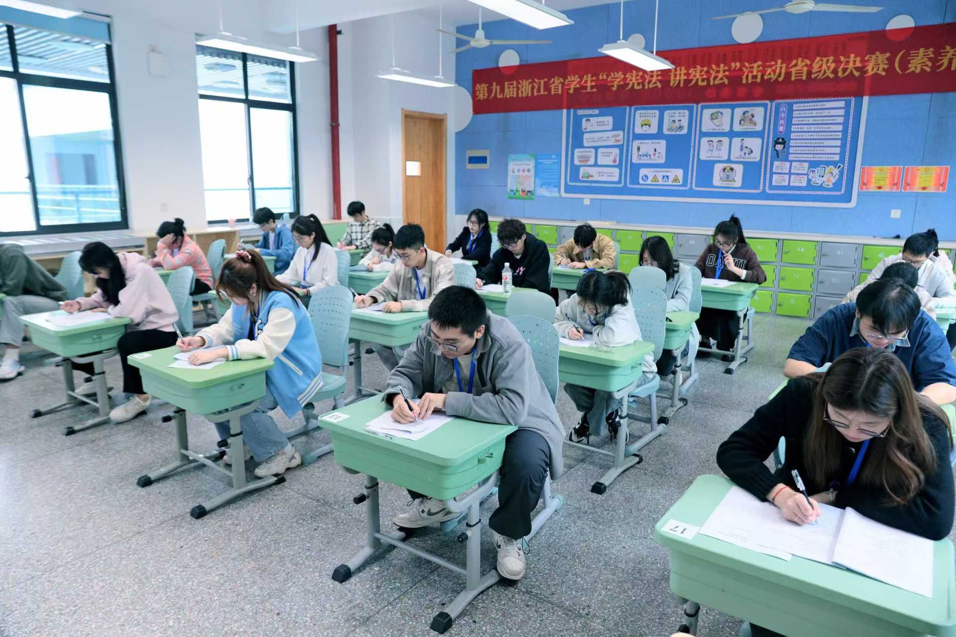 省教育厅总督学陈仁坚出席活动并致辞,省法院党组成员、副院长程建乐,省检察院副检察长柴志华,省司法厅党委委员、副厅长徐海江出席活动并为获奖选手颁奖,衢州市人民政府副市长杨圆华出席活动。本届浙江省学生“学宪法 讲宪法”决赛沿用小学、初中、高中、高校四个组别及演讲比赛和素养竞赛两个环节。