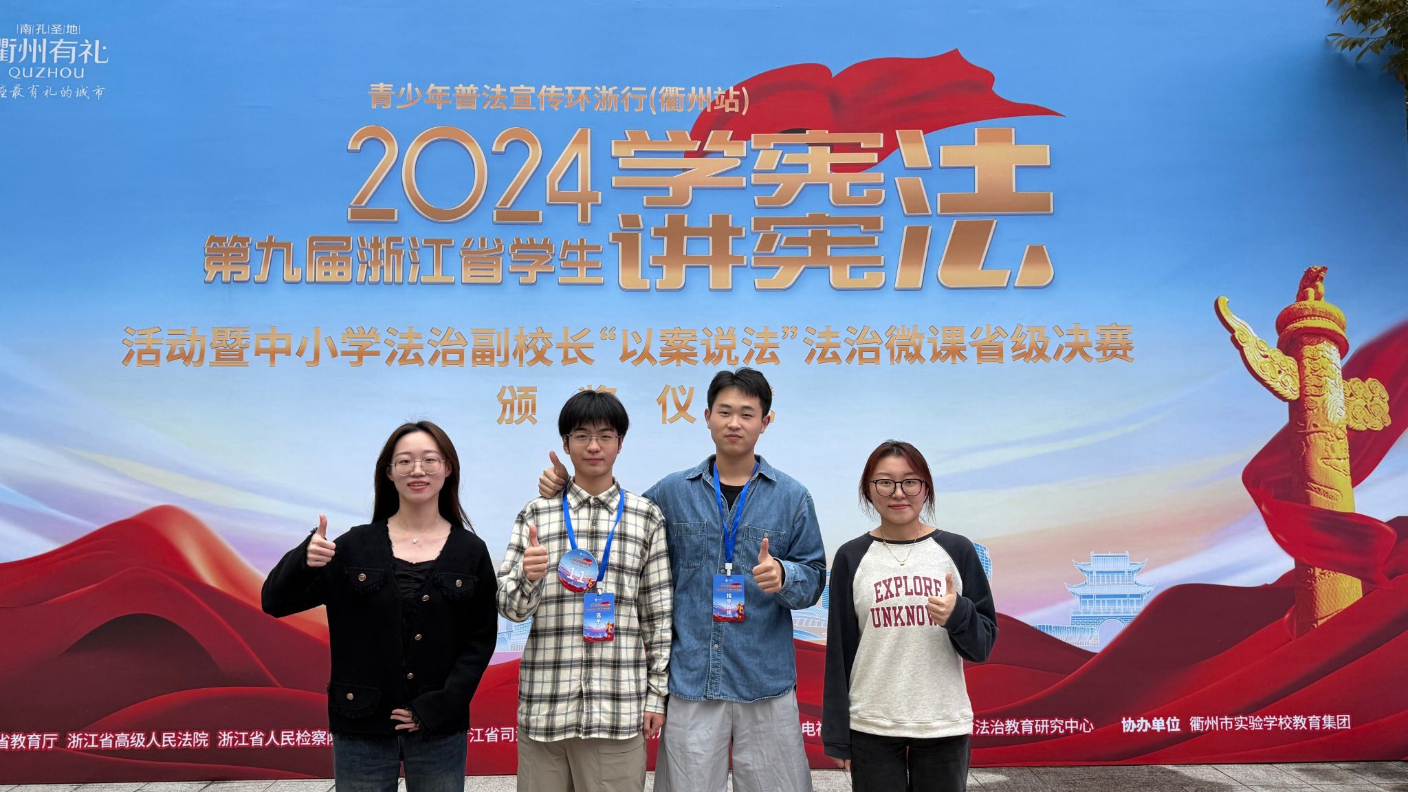 10月19日-20日,由省教育厅、省高级人民法院、省人民检察院、省公安厅、省司法厅联合主办的第九届浙江省学生“学宪法 讲宪法”暨中小学法治副校长“以案说法”法治微课省级决赛在衢州举行,杏吧原创