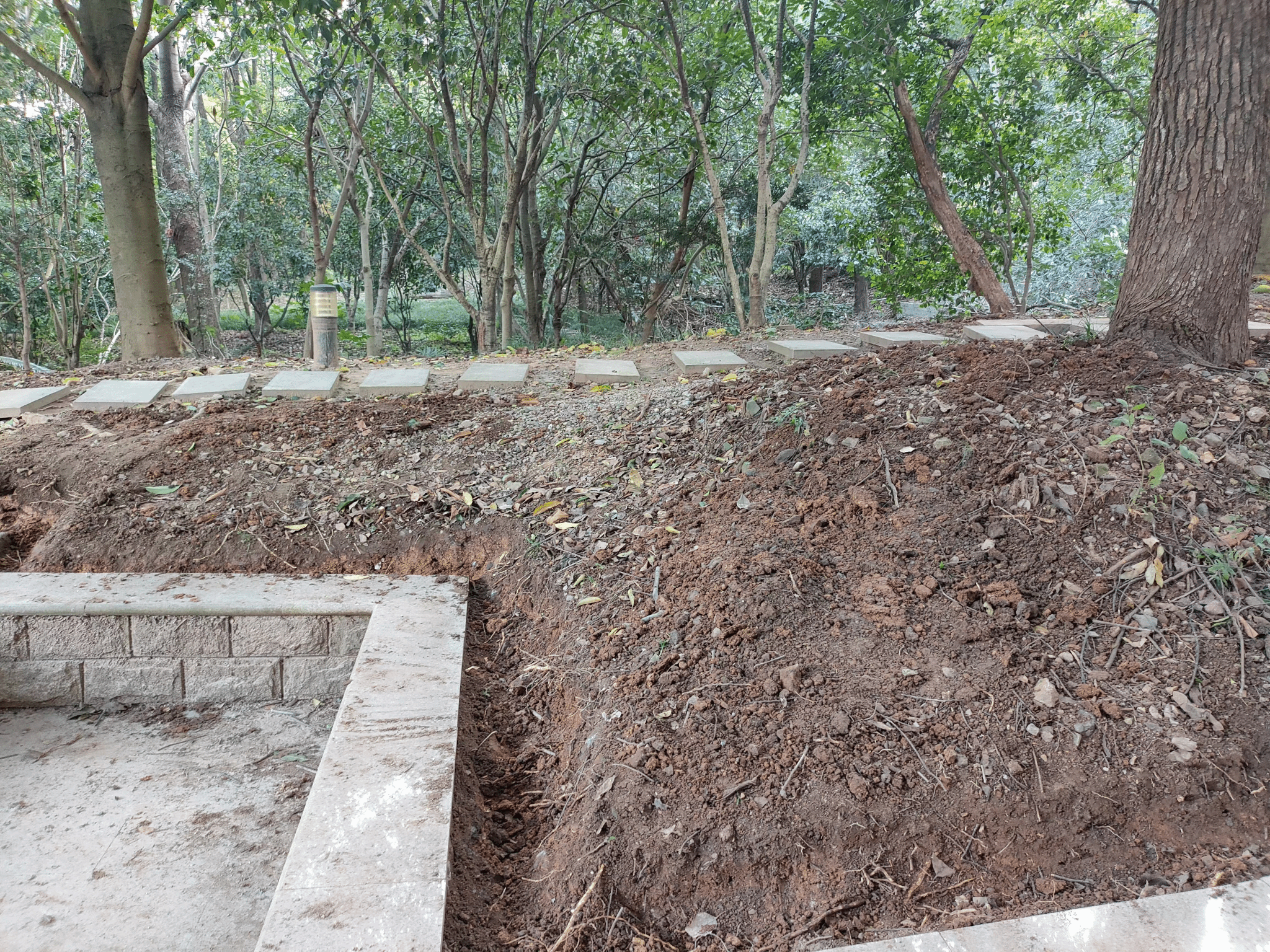 本次劳动的任务是在基地后山挖掘泥土以形成沟壑,实现对雨水的引流。同学们手持各种挖掘工具,通力合作,在规定时间内完成了劳动任务。