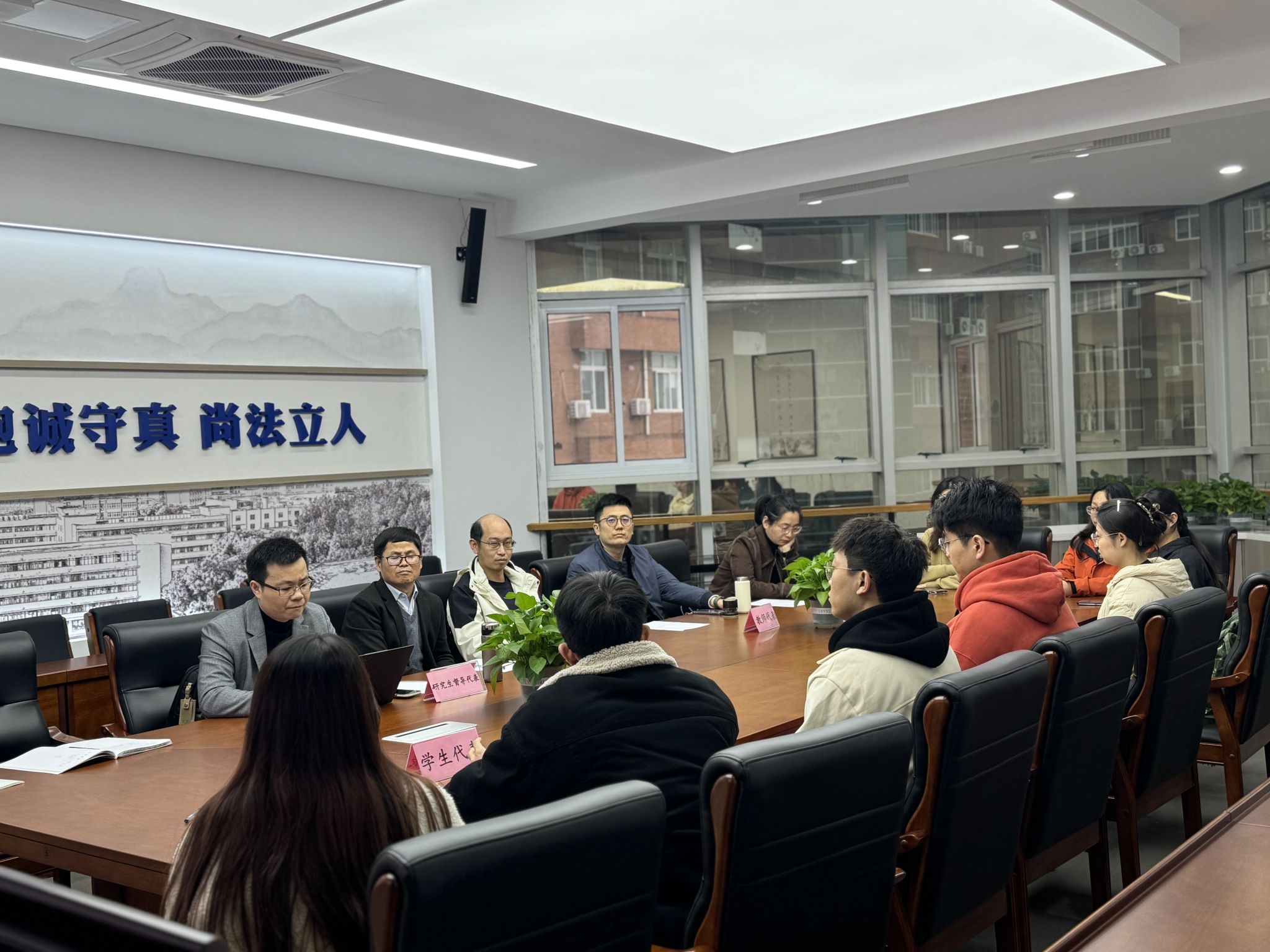 副院长何跃军教授、研究生督导蔡连增老师、吕双全老师、金韬老师、王雪琪老师及研究生督导秘书于蕾老师、学生代表8人参加了本次会议。