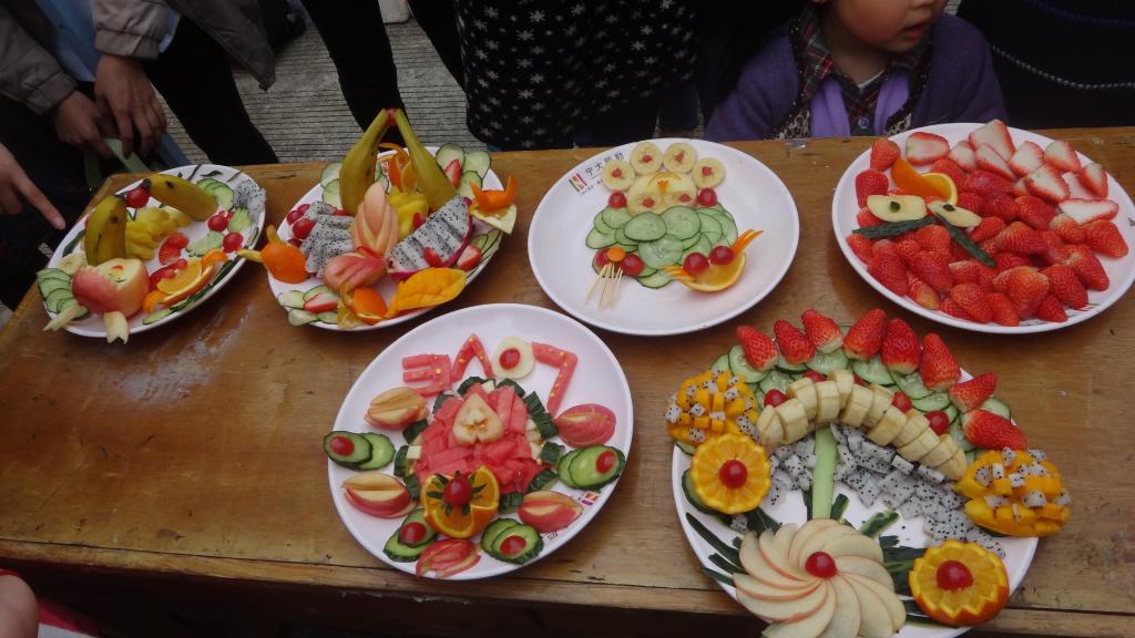 本次活动以寝室为单位报名参加,同学们利用指定的水果,在规定的时间内完成拼盘。同学们发挥自己的想象力,互相协作,给自己的作品取了新颖别致的名字,如:“海的女儿”、“夏日风情”、“海盗船”等。整个活动过程气氛活跃,不仅锻炼了同学们的观察能力和动手操作能力,而且还锻炼了同学们的求异思维、创新精神,同时也锻炼了同学们的团结合作、互帮互助的精神,激发了学生对自然和社会广泛的好奇心、探索欲和责任感。活动丰富了同学们课余生活,促进了同学与同学之间的交流,更活跃了寝室文化活动。