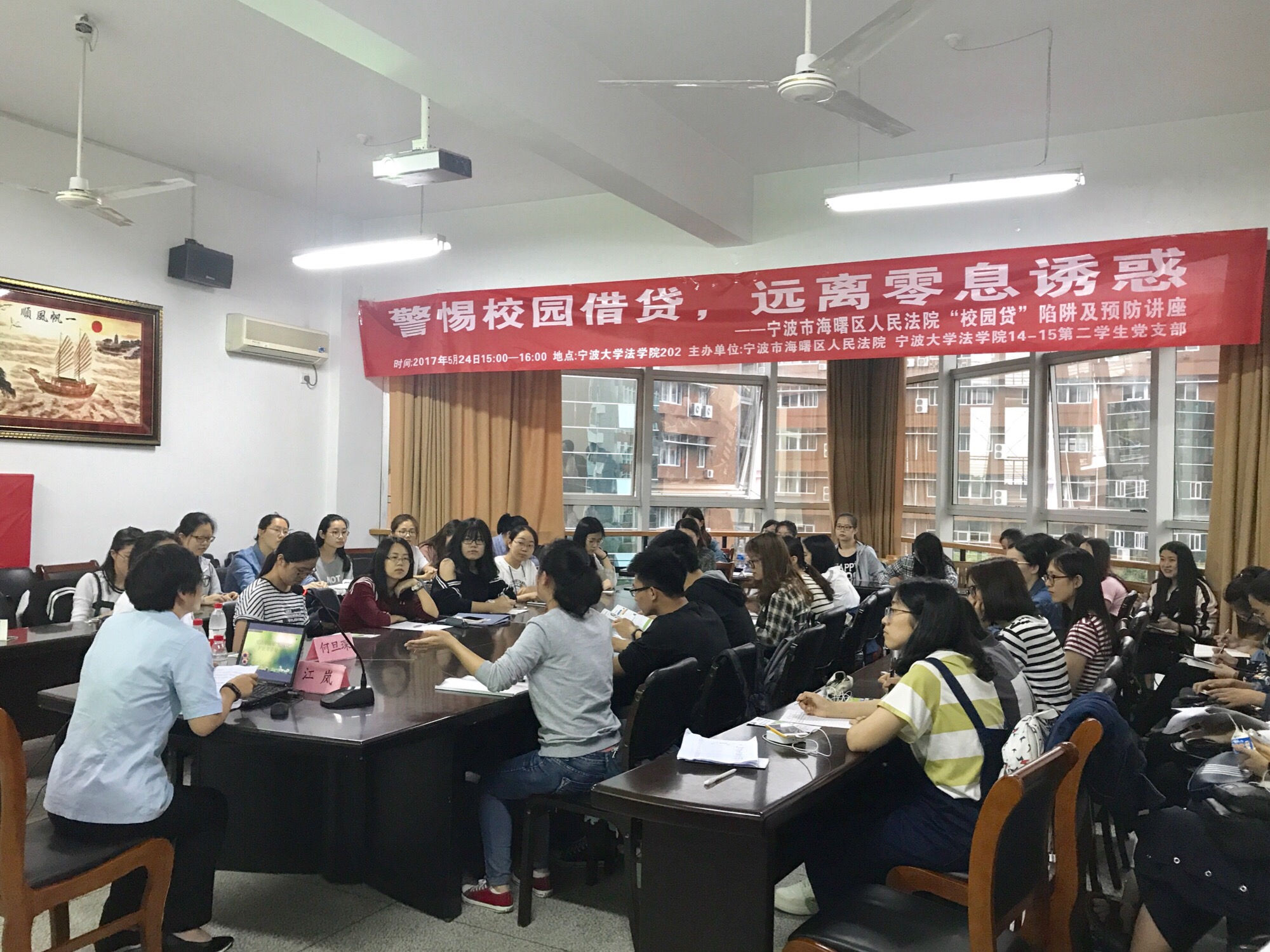 14-15第二学生党支部与宁波市海曙区人民法院主办的“校园贷”陷阱及预防讲座在杏吧原创