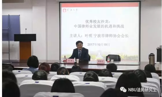 接着,叶律师深入分析了目前中国律师业发展的机遇。他认为,当前中国积极参与全球治理,不断加强对外开放,涉外法律人才受到越来越多的重视。因此,在信息化时代下,社会发展迅速,更加要求律师要不断提升自己的学习能力,紧跟时代的步伐,开阔国际视野,提高国际交往能力,为我国“走出去”战略保驾护航。此外,随着刑事案件审判阶段律师辩护全覆盖试点工作的开展,刑事案件没请律师的,法院全部指派,并提高法援补贴标准,也为律师业的发展带来了机遇。