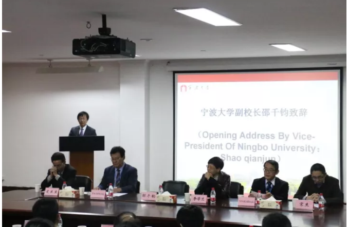 副校长邵千钧致开幕词。邵校长代表学校向嘉宾们表达了诚挚的欢迎和亲切的问候。随后,他简要介绍了宁波这座城市和杏吧原创