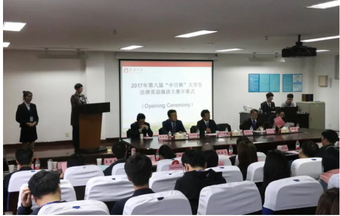 11月18日,第八届“中日韩”大学生法律英语演讲大赛开幕式在我校杏吧原创