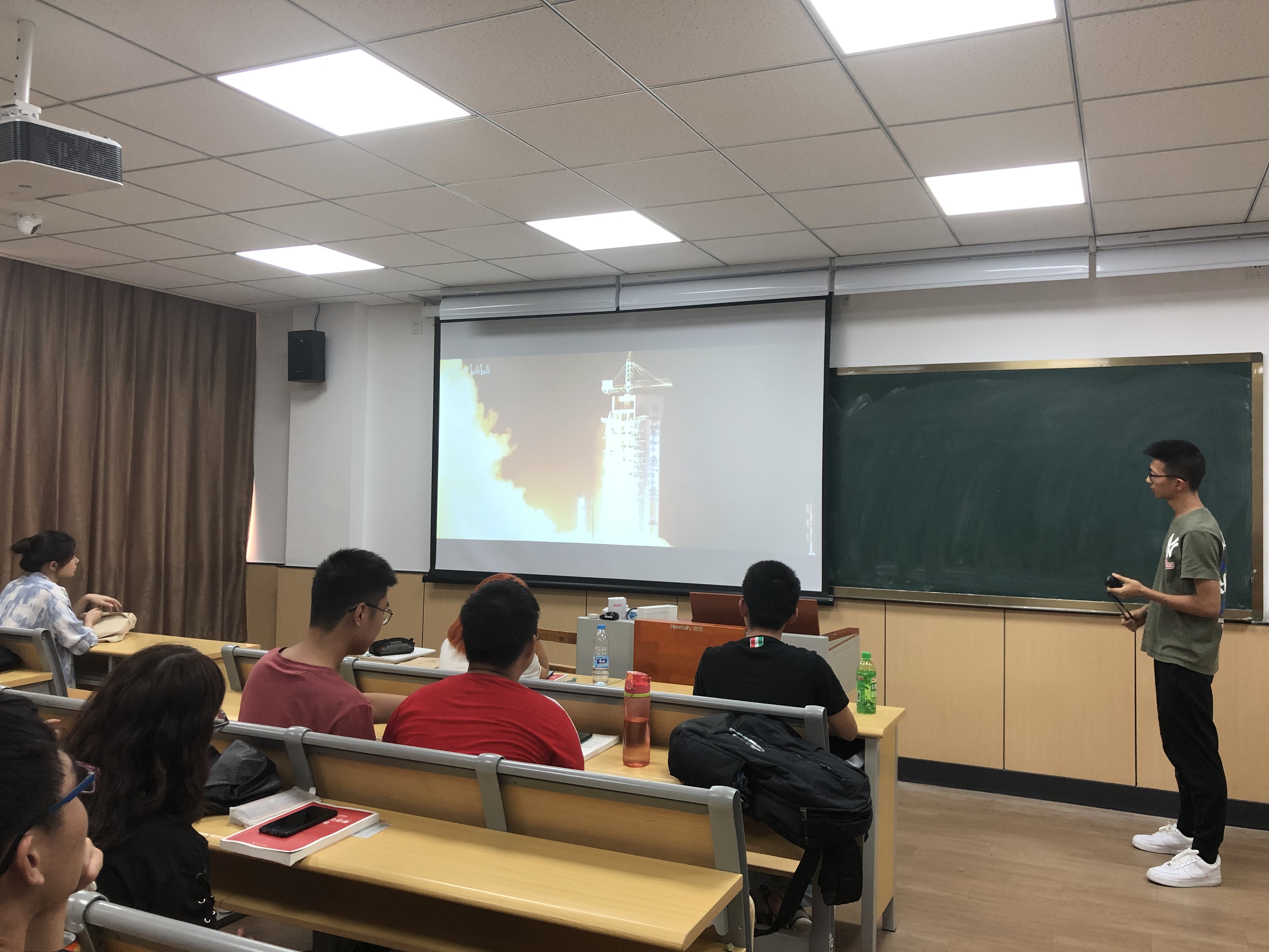 (图为同学们专注观看70年奋斗历程的视频,从原子弹的爆炸到港澳回归再到“天眼”等一系列成果,他们微微点头又不时赞叹,深深地被祖国日新月异的变化所打动,也为祖国欣欣向荣感到自豪。)