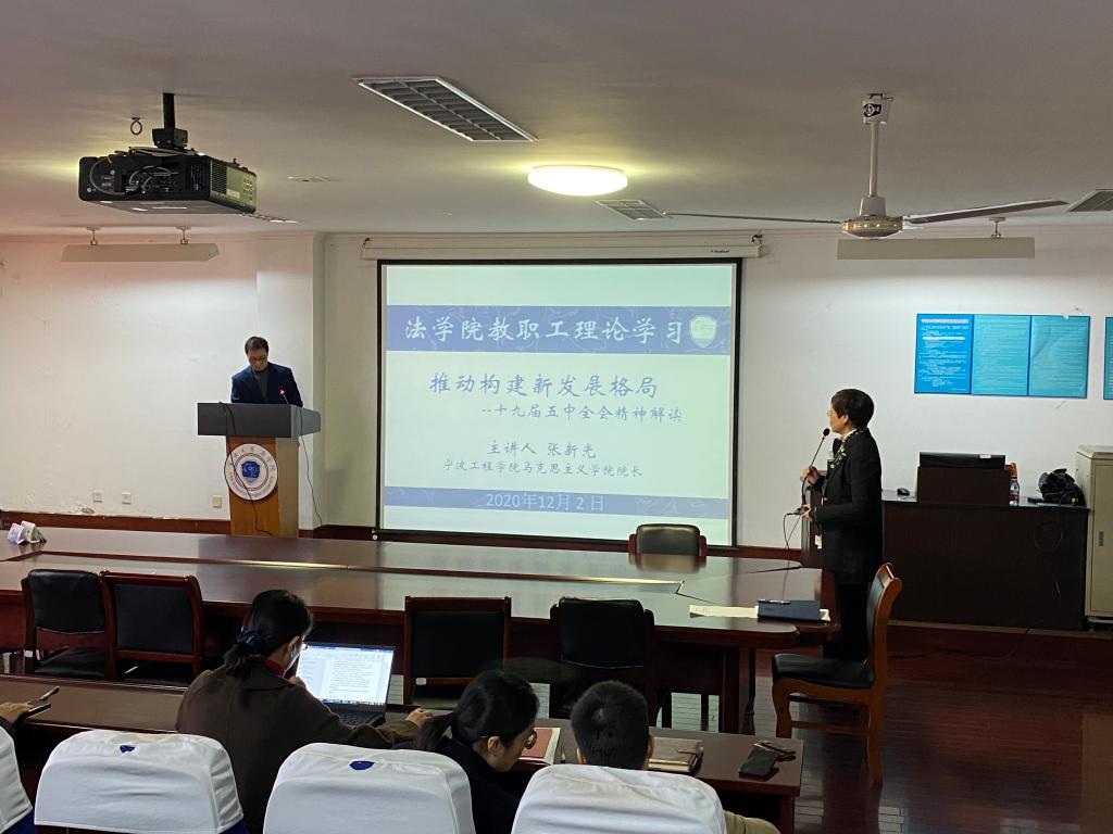 12月2日,宁波工程学院马克思主义学院院长张新光教授受邀,为杏吧原创 全体教职工理论学习活动,讲授《推动构建新发展格局---十九届五中全会精神解读》的讲座。