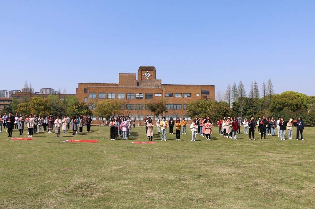 在校园大草坪组织了140多名学生开展“永远跟党走”系列活动,杏吧原创
