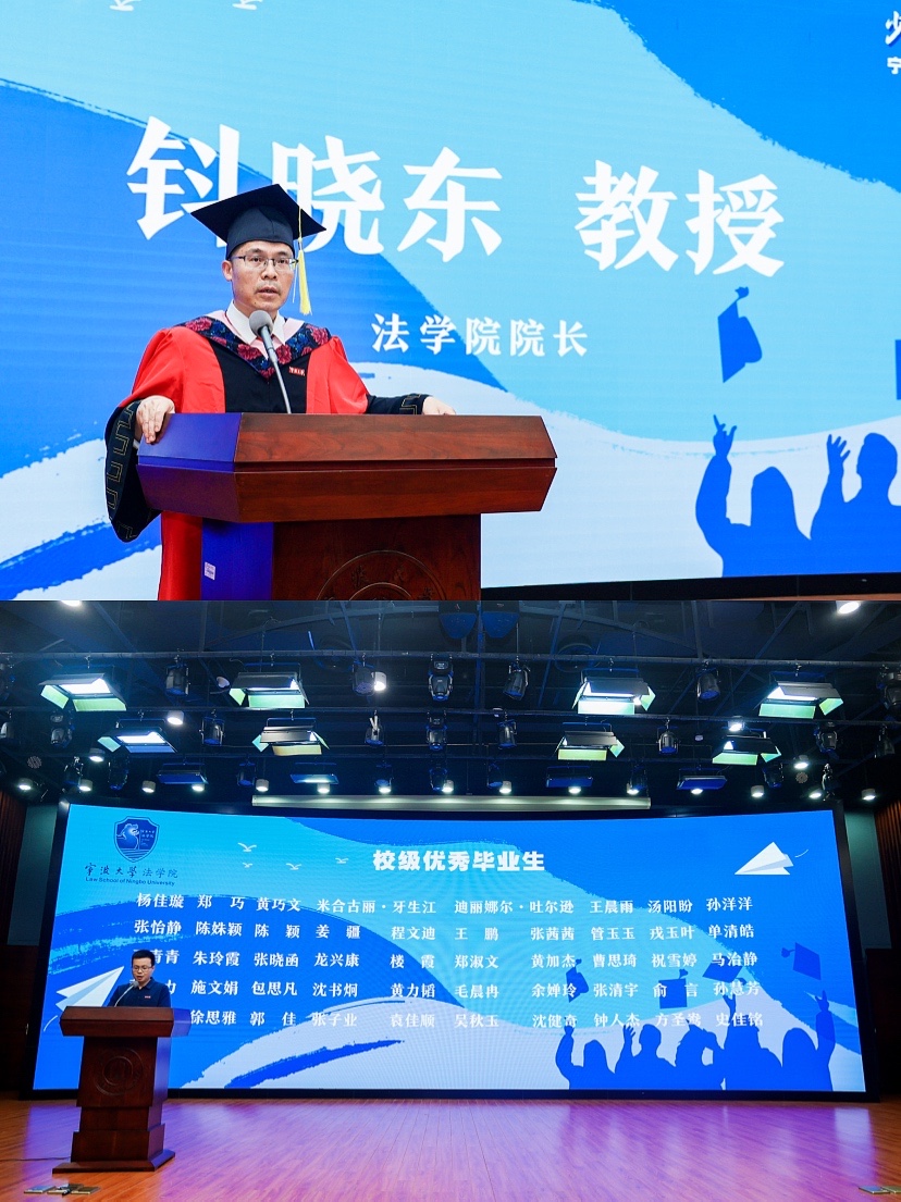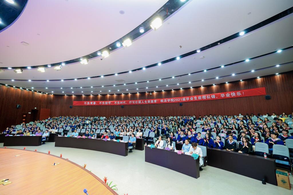 走过的点点滴滴,细数了那些在不同领域取得突出成就的毕业生,表达了学院老师对毕业生的祝福。他指出,2021届毕业生是一届特殊而幸运的毕业生,毕业之际恰逢建党100周年、建校35周年。而当今世界正经历百年未有之大变局,面对经济、政治、文明新格局的重构,如何“在危机中育新机、于变局中开新局”,主动出击,赢得新时代,值得每一位年轻的“法政”从业者深思。在发言中,他希望毕业生们能够心存正念,心怀正气,爱岗敬业,在以后的学习、生活、工作中,无论是困境还是逆境,都能从容面对,用力书写自己的诗篇。