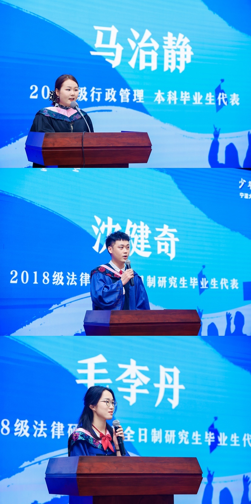 欢送会中,2017级行政管理班、2018级法律硕士班、2018级法学硕士班、2017级法学专业毕业生代表等纷纷带来精彩的演出,用青春的舞姿、动听的歌声、深情的朗诵,谱写和镌刻属于自己少年旋律。