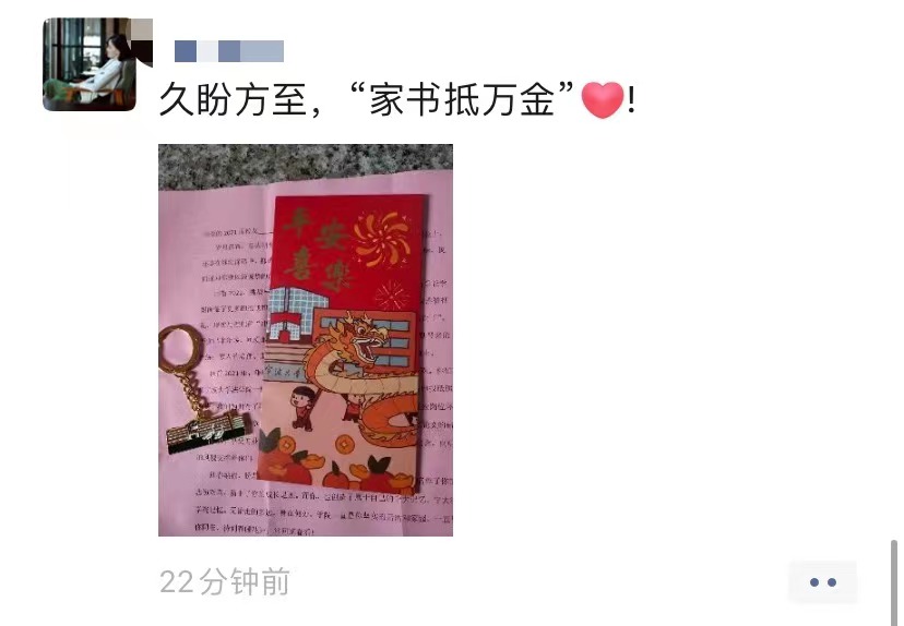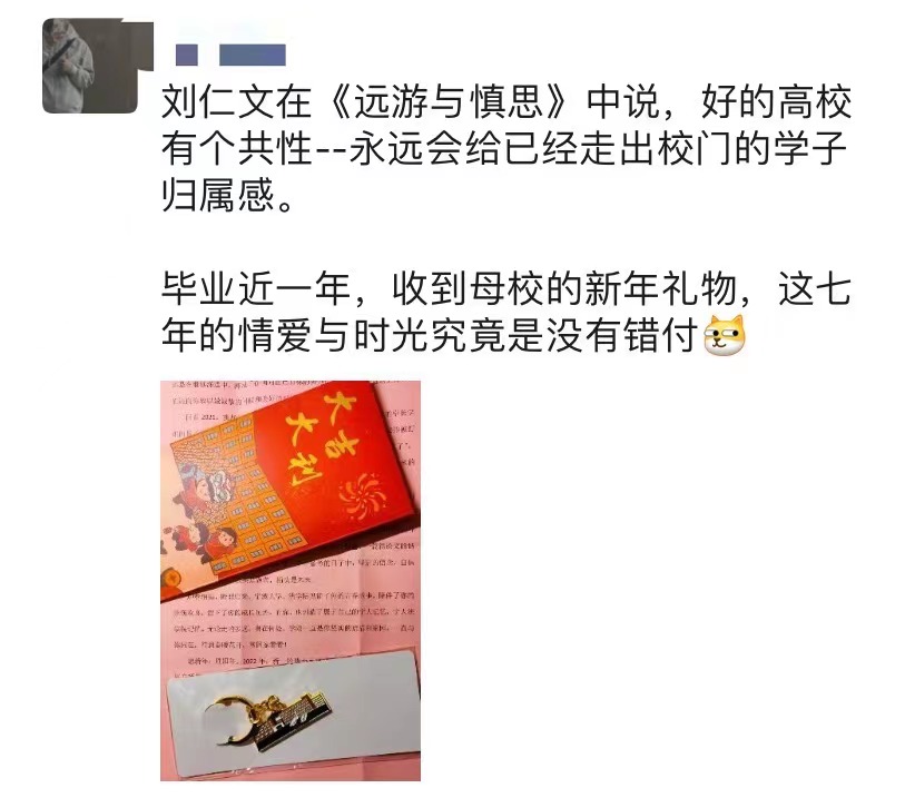 的礼物,还是很感动的”、“来自宁大的小细节,毕业生也没有被忘记”、“毕业近一年,收到母校的新年礼物,这七年的情爱与时光究竟是没有错付”,无论是本科生,还是研究生,纷纷在朋友圈“炫”出了惊喜。除了“一封家书”,学院还为毕业生们准备了宁大定制的专属小挂件。