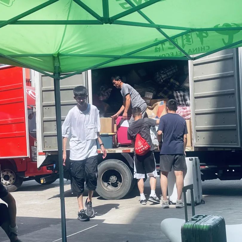 7月12日上午6点30分开始,搬迁工作小组成员到位,协调各楼宇、各楼层的行李搬运工作,引导搬运工人、同学们及时将行李搬到宿舍楼下,指引搬运货车就位、装车、发车,确保每位同学的行李都顺利搬上货车,准确转移到目标公寓楼。搬迁工作前后持续近8小时,在学院师生的齐心协力下,大家充分发挥不怕苦、不怕累的精神,互帮互助,通力合作,顺利完成了此次搬迁。