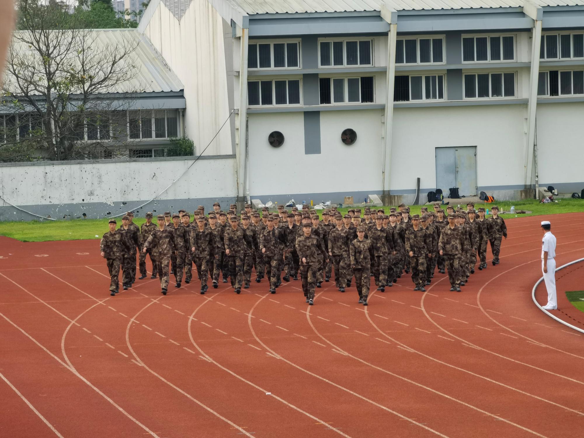2021级学生国防教育暨军事训练闭训式在主校区东区田径场举行。