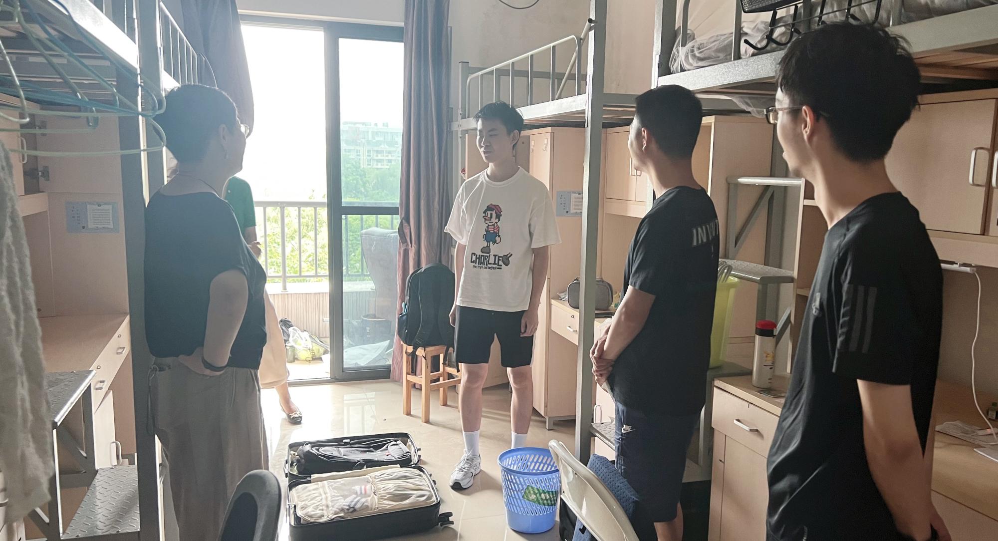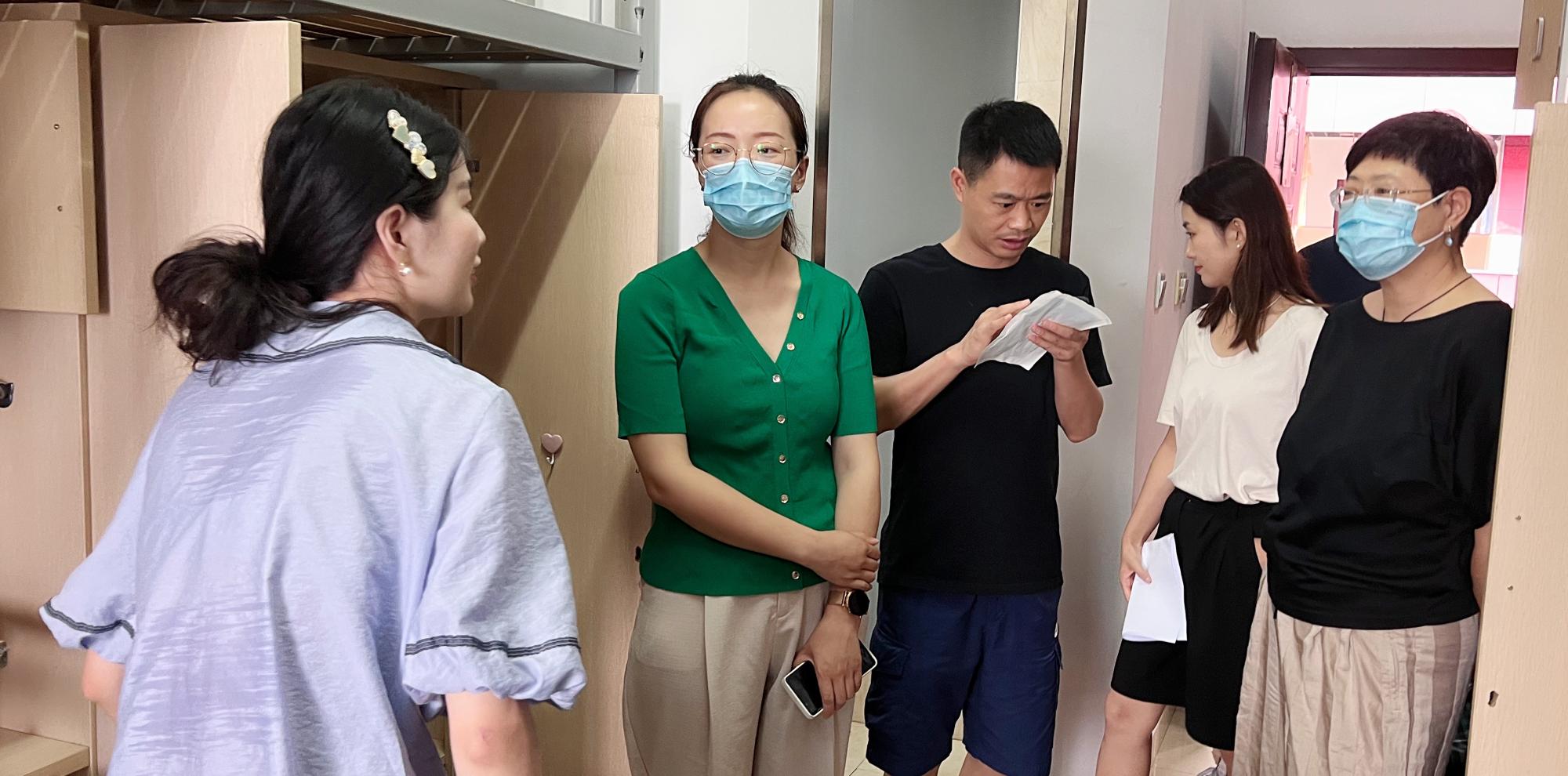 党委书记李学兰、党委副书记吴敏、学工办主任邓美玲、辅导员刘小梅、杨琦、林航、戴丽莉一行走访已报到新生宿舍。