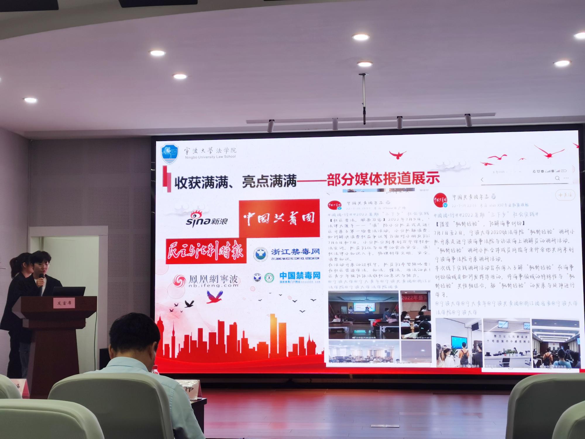 答辩现场,宁波工程学院团委书记柳艾岭老师在点评中充分肯定了“法律大篷车”实践团队在暑期社会实践中的优异表现及实践成果,用“过程实”概括了“法律大篷车”实践团队的实践表现。同时,她鼓励同学们继续积极将专业知识、志愿服务等多元要素融入社会实践,扎实推进各项实践活动开展。