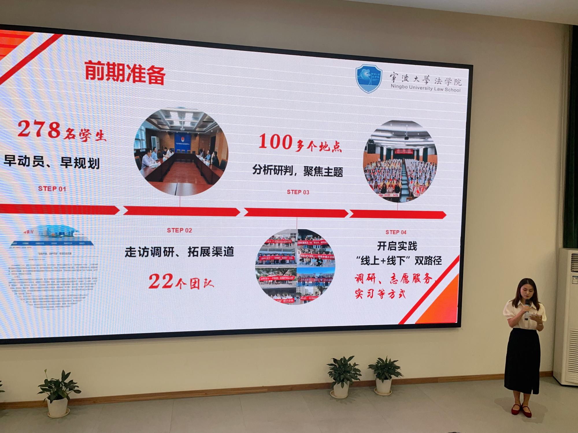 早动员、早规划,积极践行习近平总书记“用脚步丈量祖国大地,用眼睛发现中国精神,用耳朵倾听人民呼声,用内心感应时代脉搏”的殷切期盼,组织了278名同学的22支本科生团队,以“线上+线下”双路径实践模式,以23年的“法律大篷车”普法接力、红色印记、共同富裕、乡村振兴等内容为主题,以多角度多形式,奔赴了浙江、新疆等多个省份的100多个学校、社区、乡村等地点,通过调研、志愿服务、实习等方式进行实践,以实际行动为党的二十大献上一份特殊的“礼物”。