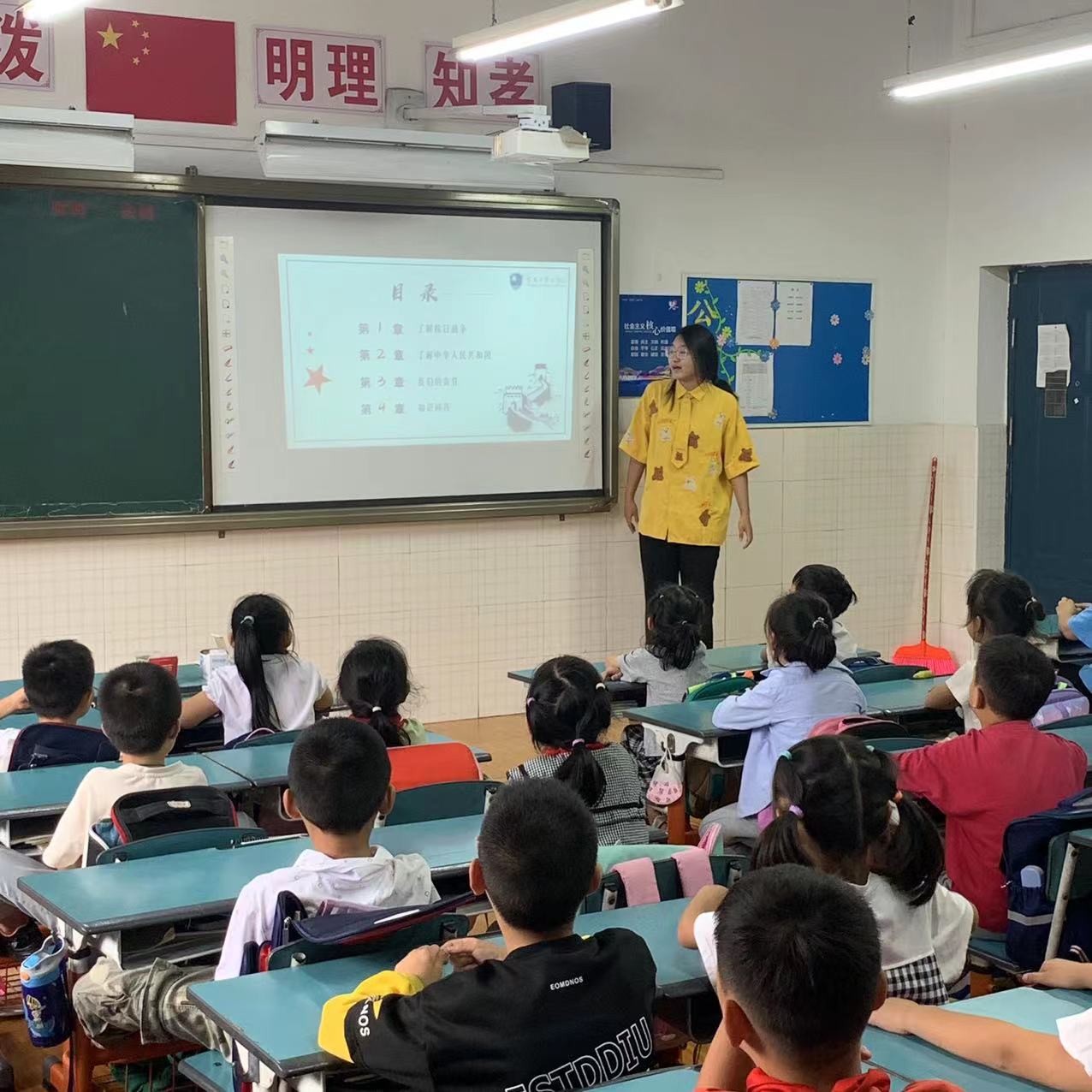 青年志愿者协会走进启文小学举办了“与时代同行,与祖国同向”爱国教育宣讲活动。志愿者们通过你画我猜、吹乒乓球、夹气球等游戏来鼓励同学们团结合作、积极进取;通过进班宣讲来对二年级同学进行爱国教育,普及历史知识,培育爱国情怀,让爱国主义深深扎根于同学们心中