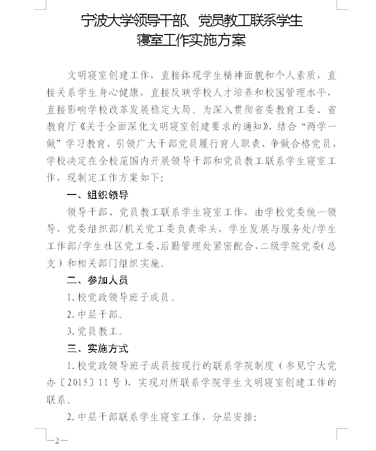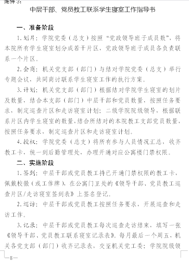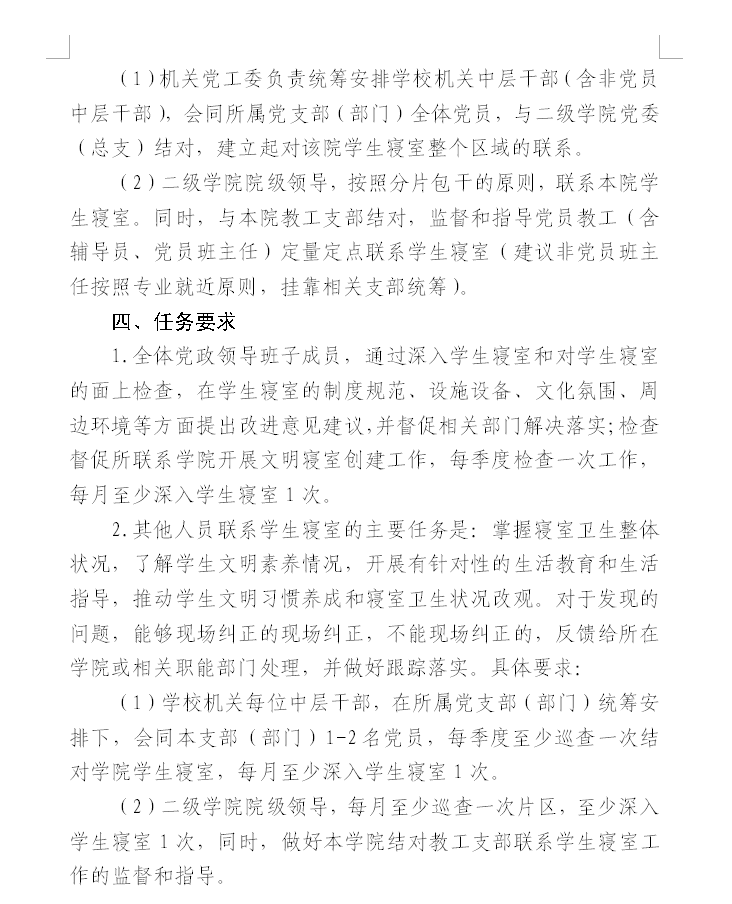 杏吧原创 领导干部、党员教工联系学生寝室工作实施方案