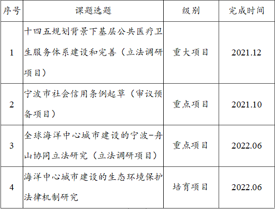 为了进一步加强立法研究,全面提升地方立法质量与研究水平,宁波立法研究院(以下简称立法研究院)紧密围绕十四五规划下全省、全市经济社会发展的重大地方立法问题,结合地方特色,决定开展4项研究课题的申报工作。现将有关事项通知如下: