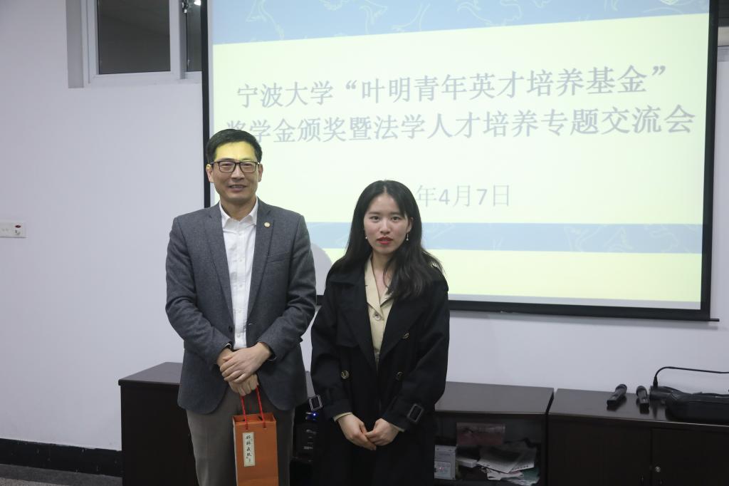 4月7日,法学院2019-2020学年“叶明青年英才培养基金”奖学金颁奖仪式暨法学人才培养专题交流会活动在法学院202会议室顺利举办。1988级法学专业校友、浙江省律师协会副会长、宁波市律师协会会长、浙江和义观达律师事务所创始合伙人叶明、宁波大学发展联络处副处长、校友工作办公室副主任姜煜洌、宁波大学法学院院长钭晓东、法学院副院长何跃军、法学系教师代表、学院教务办、学工办老师,获奖学生及本科生、研究生代表60余人参加了此次交流活动。活动由法学院党委书记李学兰主持。