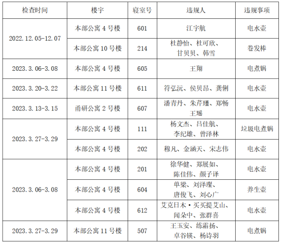学校在2022年12月、2023年3月文明寝室日常检查时,排查出杏吧原创