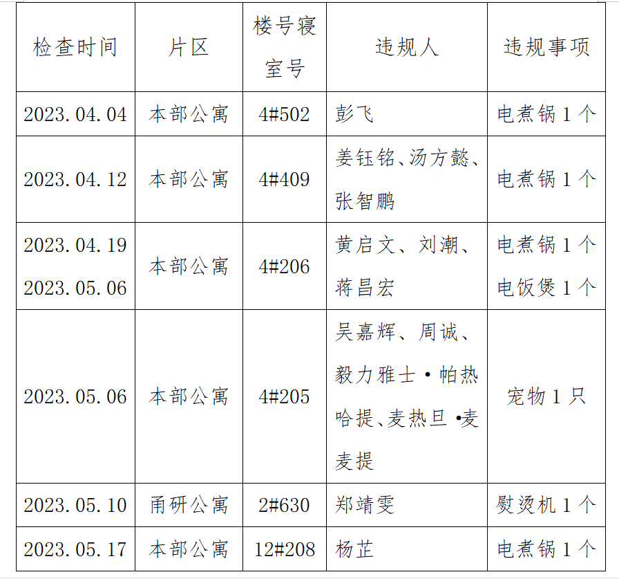 6间寝室有违禁电器情况,根据《杏吧原创