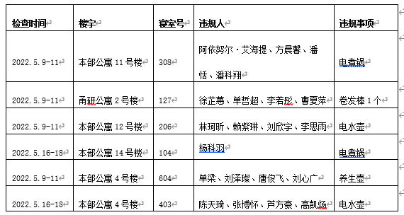 学生违纪处分办法(宁大政[2017]114号)》第二条、第四条相关规定,将予以院内通报批评。检查结果如下: