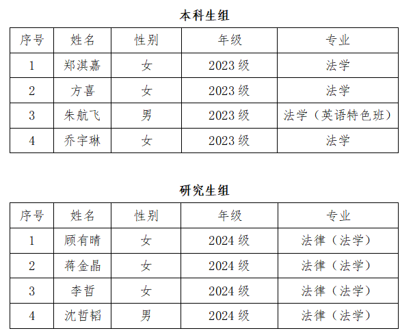 “金法槌杯”模拟法庭大赛。具体名单如下: