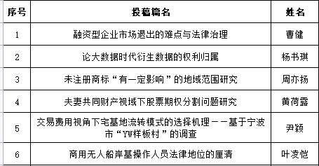 第二条 经过盲审,最终入选法学院分会场现场评审的硕士研究生论文和具体信息公示如下: