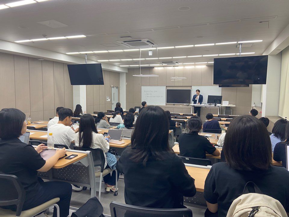 我选择的课程除去韩语学习和冥想课,都是英文授课方式。虽然从平时上课发言到作业、考试都要求英语完成,但实际并没有想象中那么困难。学生大部分都不是来自英语母语国家,教授在课上会用更多简单词汇,遇到比较专业的单词、术语则会在黑板写下并且加以解释。因为课堂讨论、发言都要求用英语,我的英语口语在交换期间得到了很好的锻炼。没有教授或者同学会纠正你的语法或者嫌弃你的口音,每个人在课堂上都能自信地表达。有一门课程期中考试和期末考试都有论述题,考试结束教授会把答题纸发下来,上面有他的批注,会特别提醒我们论述时的思维结构和口语书面语的区分。虽然在韩国交换,但对英语练习其实也非常有帮助。