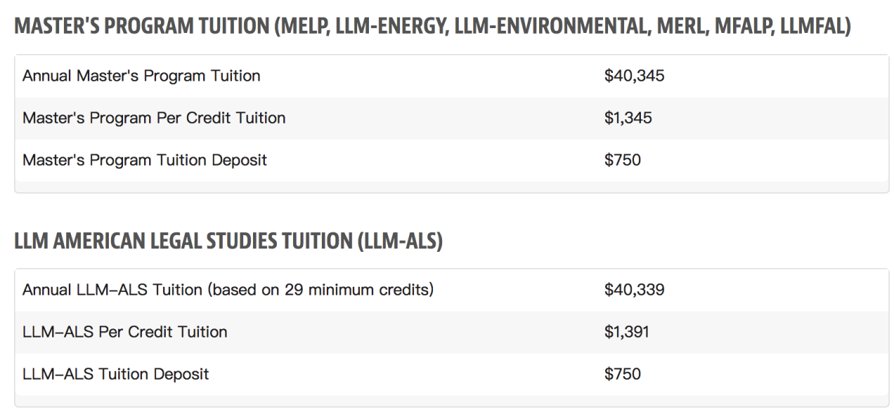 Full-time LLM students typically complete these 30-credit program in 12 months or online in 18 months. Students can take courses on a part-time basis and have up to five years to obtain their degree. The residential program can be started in either the Summer or Fall semesters.