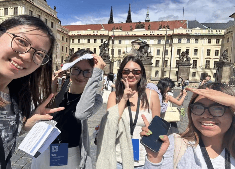宁波大学法学院注重培养具备国际视野、涉外法治实务能力的涉外法治人才,强化与东南亚、中东欧国家高校合作关系,为学生提供海外交流学习与实习的机会。2025年7月7日至2025年8月22日,2023级法学英语特色班的林文清、黄园圆、段僖雯和钱雨萱四位同学前往捷克首都布拉格参加了由European Centre for Career Education 组织的主题为“新兴科技与商法”的暑期实习研学项目。项目为期七周,包含三周的课程学习和四周的实习。项目课程由欧洲各大律所合伙人及著名教授授课,提供各领域法律课程及实务经验分享。ECCEDU为学生提供了进入世界知名公司、欧洲律师事务所等机构实习的机会。四位同学圆满完成了项目,在多元文化和专业学习中收获了别样的成长。
