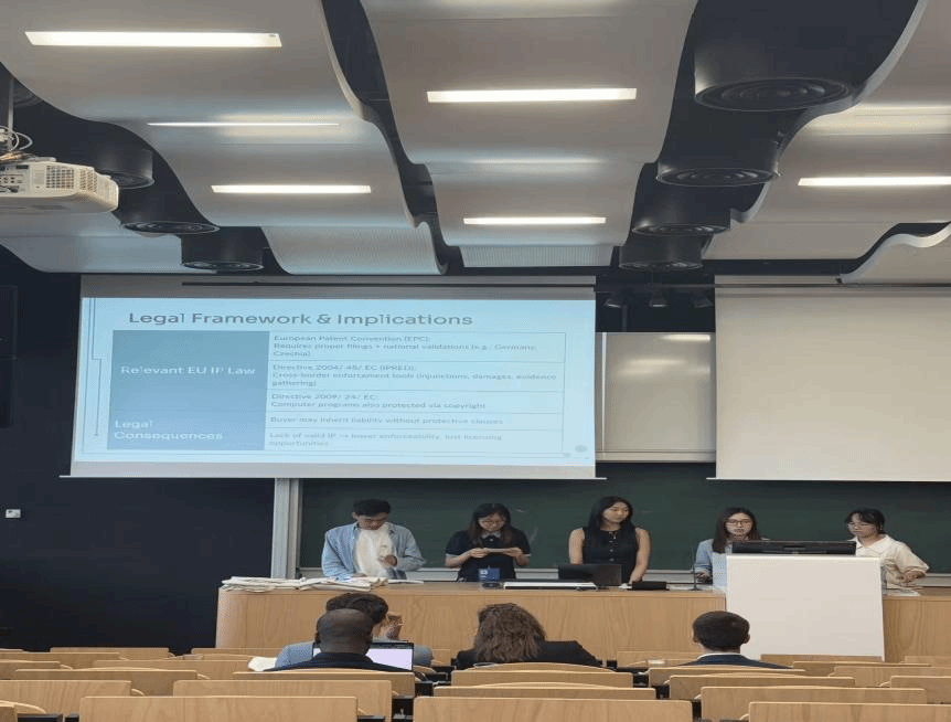 项目的第一阶段是三周课程学习,全英文的授课环境起初让我有些紧张,但也激发了我的潜能。课堂上,我能感受到讲师们都非常认真耐心地为我们讲授专题内容,不仅包括欧盟法律体系的框架构建,还有具体法条在实际案例中的应用,每一个知识点都让我对这一领域有了全新认知。我也感叹大二学习了双语课程以及法律英语后来学习正是运用法律英语的好时机,全英文授课与汇报对我而言是一次不小的突破,我们小组齐心协力拿到了项目的第一名。