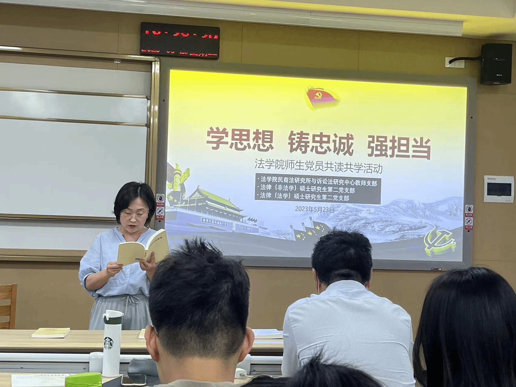 5月23日晚,为深入开展学习贯彻习近平新时代中国特色社会主义思想主题教育,全面对标“学思想、强党性、重实践、建新功”总要求,法学院民商法研究所与诉讼法研究中心教师党支部联合法学院法律(法学)硕士研究生第二党支部、法律(非法学)硕士研究生第二党支部共同开展了“学思想 铸忠诚 强担当”师生党员共读共学活动,民商法研究所与诉讼法研究中心党支部书记刘满达老师以及师生党员代表20余人参加了此次活动。
