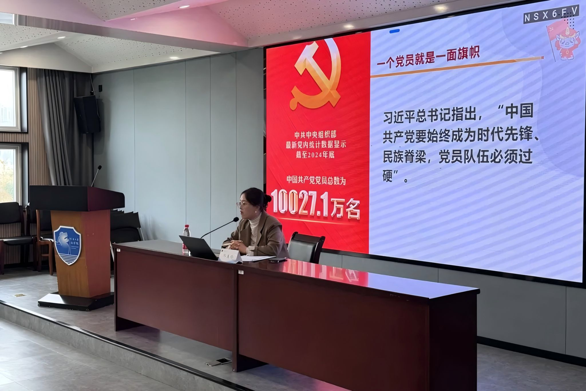讲座以“四讲四有”合格党员标准为主线,系统阐述了新时代共产党员应当具备的基本素质和行为准则,强调“讲政治、有信念,讲规矩、有纪律,讲道德、有品行,讲奉献、有作为”不是抽象概念,而是融入日常、做在经常的具体实践。她结合校园学习生活实际,指出党员先锋模范作用应体现在专业学习、志愿服务、社会实践等具体行动中,鼓励学员们从点滴做起,在服务奉献中锤炼党性,以实际行动践行党的根本宗旨。