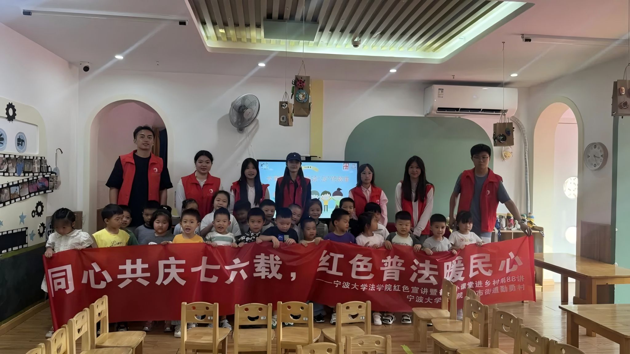 金秋十月,丹桂飘香。在祖国 76 华诞的喜庆氛围尚未褪去之际,为进一步延伸红色教育触角、播撒法治种子,10 月 15 日下午,宁波大学法学院学生第三党支部,走进勤勇村小天鹅幼儿园,开展 “同心共庆七六载,红色普法暖民心” 主题宣讲活动,此活动系宁波大学法学院红色宣讲暨普法小课堂进乡村第88讲。志愿者们以生动有趣的形式,为幼儿园小朋友们带来了一场兼具红色温度与法治力量的启蒙课堂,让红色基因在童真心灵中萌芽,让法治意识在欢声笑语中扎根。