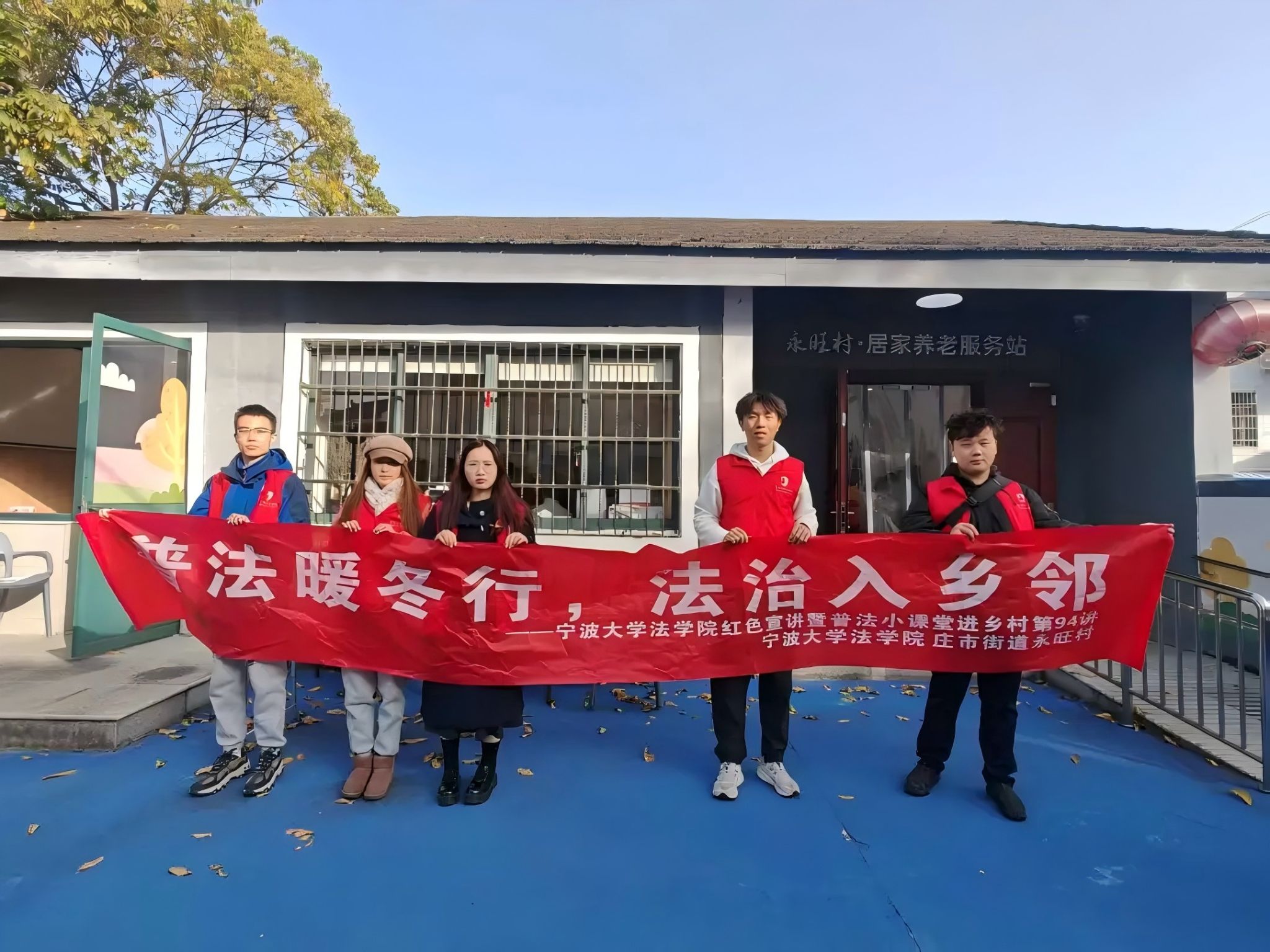 小雪至,寒意生,法治暖。2025年11月25日上午,恰逢《中华人民共和国法治宣传教育法》正式施行,宁波大学法学院先锋小站党员义工实践中心组织法学硕士研究生第一党支部,赴永旺村开展“普法暖冬行,法治入乡邻”红色宣讲暨普法小课堂第94讲活动,将法律知识与节气关怀送到村民身边,为冬日乡村注入法治暖流。