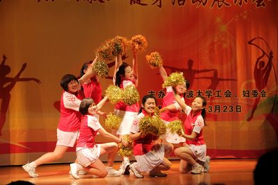 3月23日下午,作为庆祝“三八”国际劳动妇女节101周年的压轴戏,由校工会举办了宁波大学会在锦绣小剧场隆重拉开了帷幕。法学院工会积极组织参与该活动给予配套服务,由院党委书记方晓春和分工会主席蒲一苇带队的刘白雪、吴敏等八人组队,经过三周的紧张训练和准备,法学院代表队的“酷啦啦快舞”浮出水面。