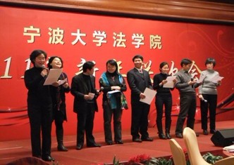 2010年12月31日下午3点,法学院在开元名都大酒店大堂举行了新年联欢会暨十周年院庆。在誉为“宁大百灵鸟” 朱柯老师清婉动听的歌声中,联欢会隆重地拉开了帷幕。法学院各系的30多名文艺爱好者表演了独唱、合唱、诗朗诵、绕口令等精彩纷呈的节目。会场上笑声不断,洋溢着温馨和快乐。受联欢会热闹氛围的感染,退休老教师也上台即兴表演了京剧、交谊舞。由张炳生院长、屠文淑老师等表演的方言荟萃《地球,我们的母亲》,形式新颖、内容环保,场下掌声雷动,掀起了联欢会的高潮。 “窗外寒意浓浓,室内欢声笑语,温暖如春。” 联欢会结束后,张院长简短回顾了2010年来学院在教学、科研、服务地方等取得的成绩后,真诚希望全院老师在新的一年里用智慧和勇气、团结和奉献精神谱写学院发展的新篇章。