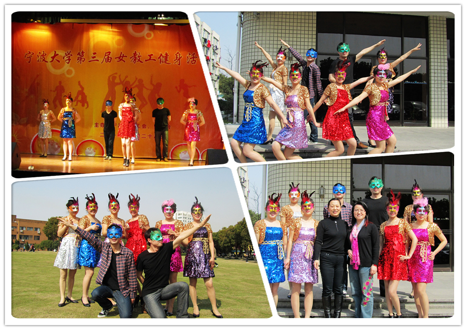 3月28日,宁波大学第三届女教工健身活动展示会在锦绣小剧场举办,法学院教工队给大家带来的一曲《炫舞青春》让全场为之惊艳。卸下职业的套装,摘掉理性的眼镜,隐去干练的面容,取而代之的是闪亮绚丽的服装,轻盈欢快的舞步,神秘迷人的面具,这一切都将整个舞台点燃。一幅让人难忘的画面,一首欢快的青春舞曲,无不是法学院女教师们用自身女性魅力层层丝丝的勾画出来,这也反映出法学院女教师们对理性和感性的融合做出了完美的诠释。