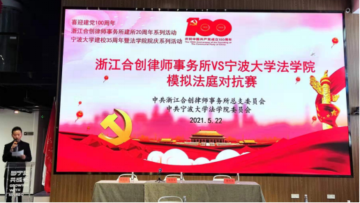 5月22日下午,宁波大学法学院与浙江合创律师事务所模拟法庭对抗赛在宁波市人才之家一楼路演厅顺利举行。本次比赛邀请宁波大学法学院党委书记李学兰、张炳生教授、张亚平教授、浙江合创律师事务所执委会主任徐自立律师、合创所副主任沈科律师作为评委。宁波大学法学院卓越律师班的同学们,浙江合创律师事务所的部分律师们,以及蛟川双语学校的部分师生参加了此次活动。