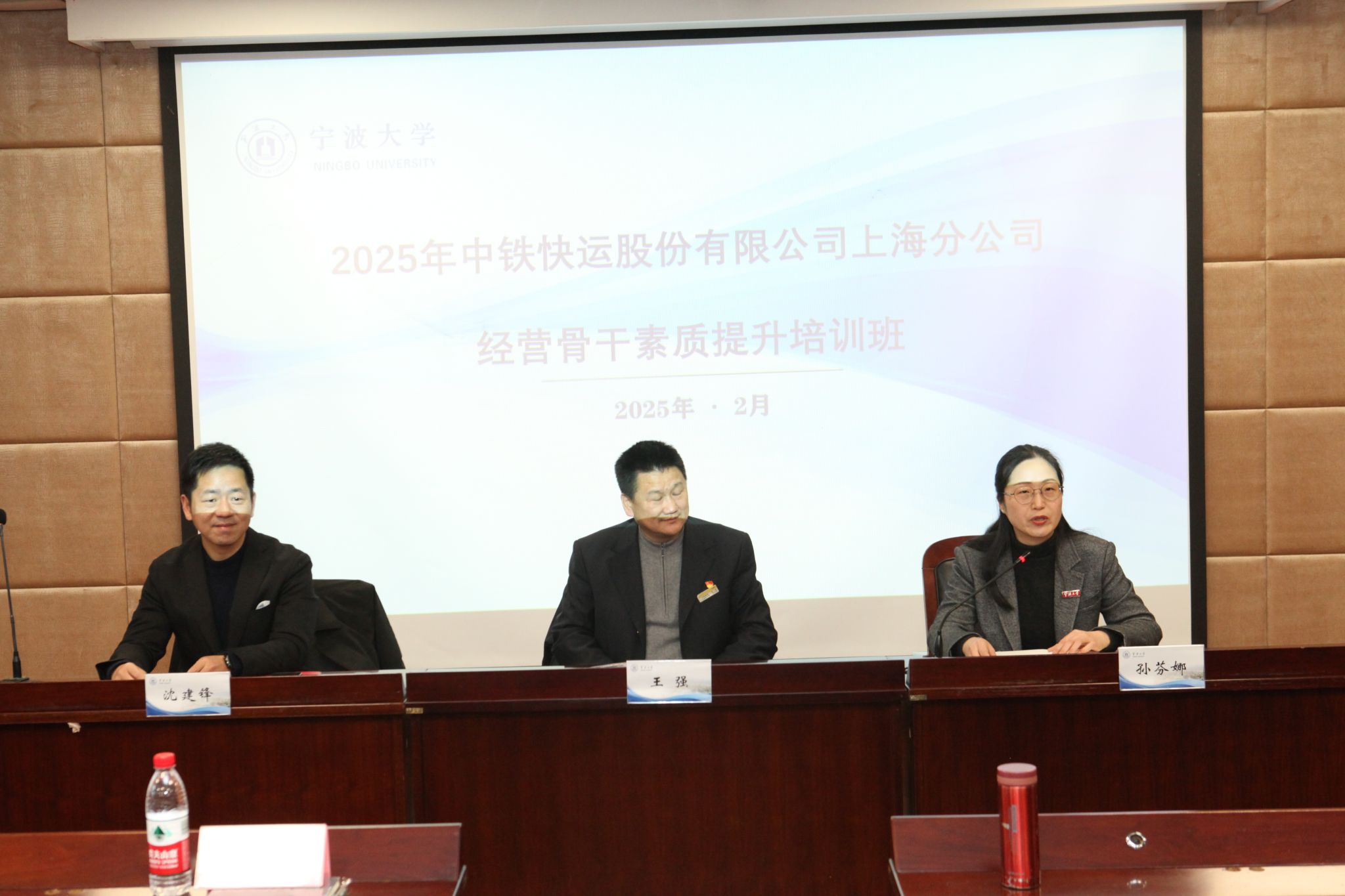 2025 年 2 月 20 日,由中铁快运股份有限公司上海分公司主办、宁波大学法学院承办的“2025 经营骨干素质提升培训班”开班式在宁波大学法学院顺利举行。宁波大学法学院党委书记孙芬娜、中铁快运股份有限公司上海分公司总经理兼党委书记王强、宁波大学法学院培训中心主任沈建锋出席开班仪式,来自长三角三省一市铁路物流系统的 146 名管理骨干及负责人一线参加了为期8天的培训。