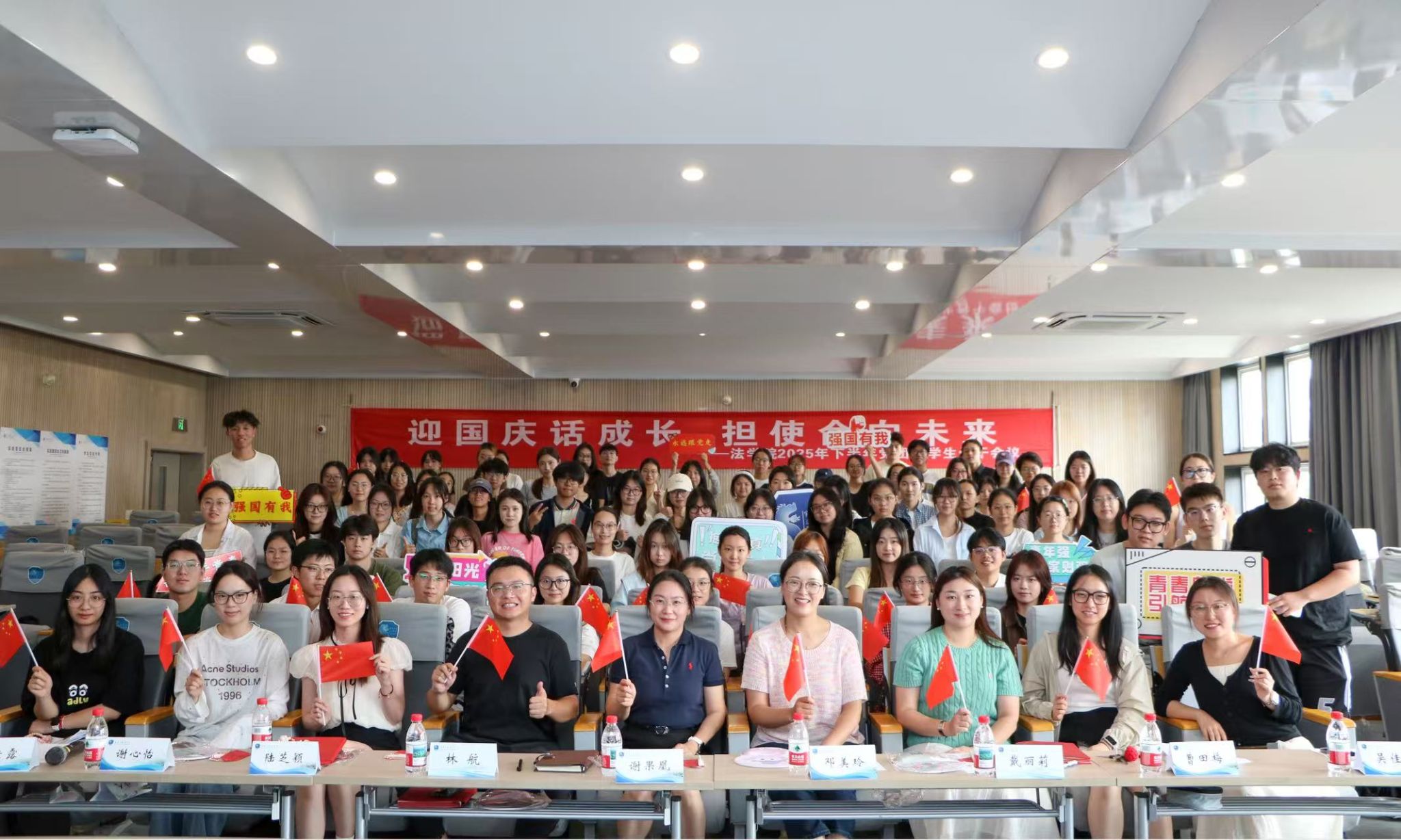 为弘扬爱国主义精神、增强集体凝聚力,先锋小站精心策划组织“迎国庆・送祝福” 活动安排。在场的近百名师生通过结合自己的专业特色,在先锋小站提前准备好的卡片上,写下自己的国庆祝福,之后由各位老师通过抽盲盒的方式抽取卡片、读出祝福,传递对祖国的美好祝福。本次活动以节日为契机凝聚了师生情感,让爱国情怀在细节中落地生根。